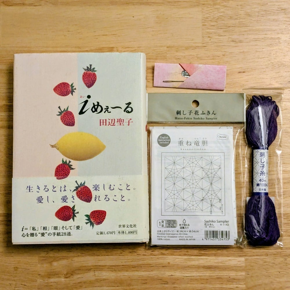<パック内容> 晒木綿(綿100%)、作り方説明書、刺し子糸(綿100%)、刺し子針1本、糸通し1つ。