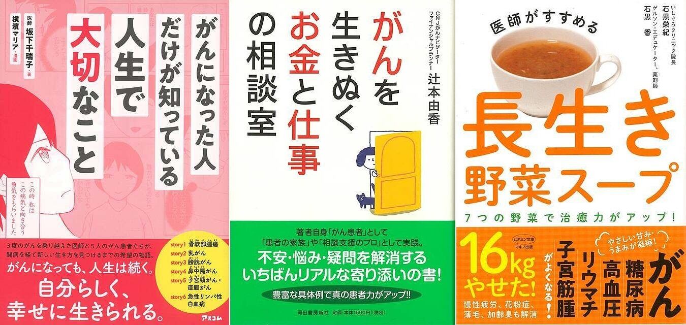 「がんになった人だけが知っている人生で大切なこと」 (著:坂下千瑞子)& 「がんを生きぬくお金と仕事の相談室」 (著:辻本由香)&「医師がすすめる長生き野菜スープ」 (著:石黒 栄紀、石黒 香) | #WOMENSBOOKS 女性の本